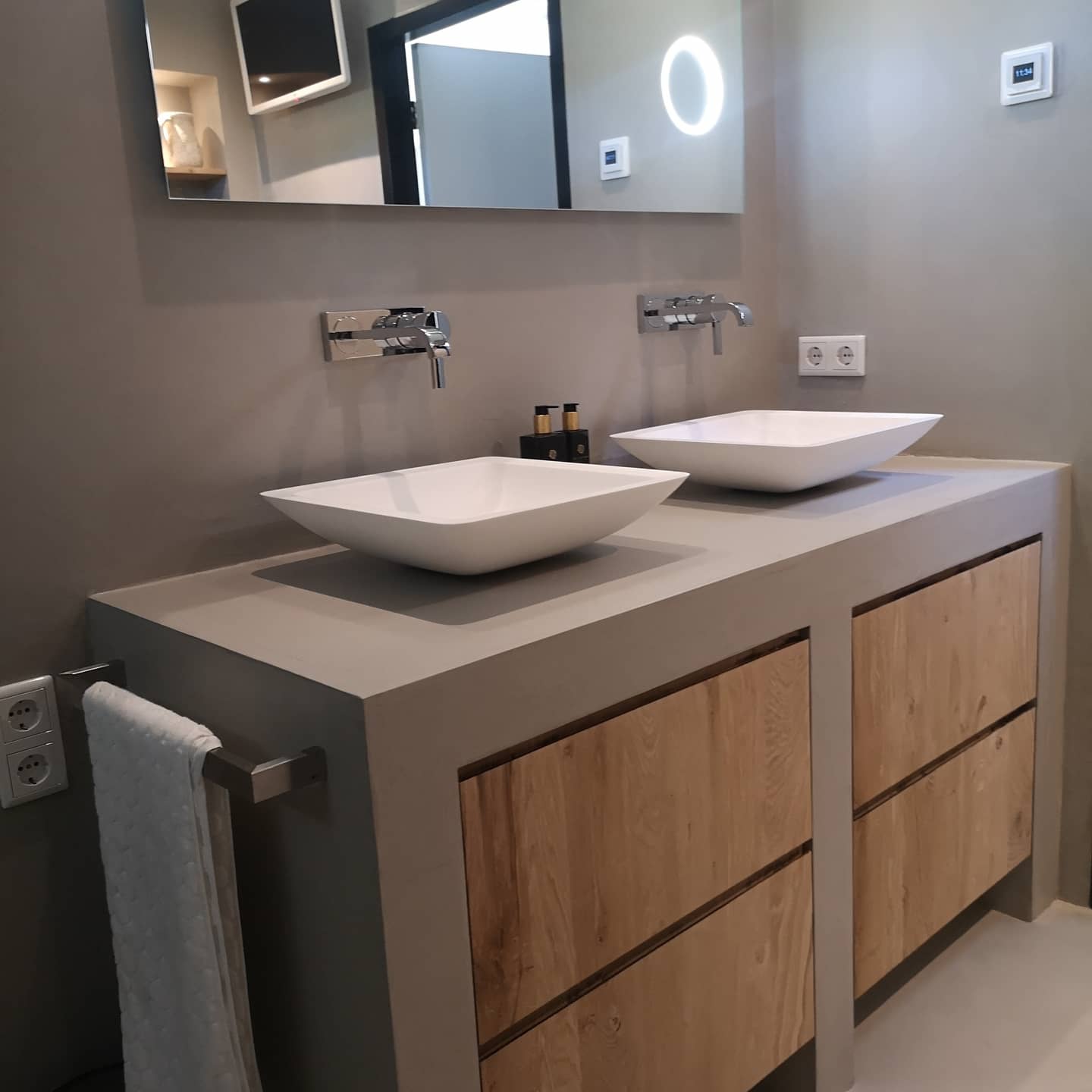 Het resultaat is een naadloos oppervlak dat warmte, elegantie en vakmanschap uitstraalt, geschikt voor vrijwel elke ruimte.